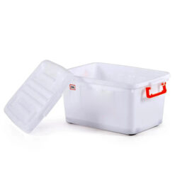 - Thùng nhựa có nắp đậy, đế có bánh xe di chuyển linh hoạt, tay xách cực kỳ tiện dụng.